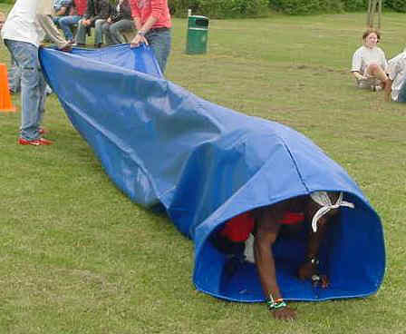 Wie als eerste aan de andere kant van de kruiptunnel is, is de winnaar!
