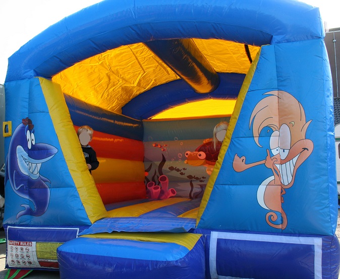 ZEEWERELD MET DAK springkussen. afmeting 4 x 3.5 meter.