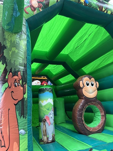 03 JUNGLE PARK springkussen met glijbaan en dak